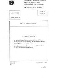 Elaboration de prévisions départementales et académiques d'effectifs scolarisés dans le second degré aux rentrées 1974-75 et 1975-76. Prévisions des candidats admis au baccalauréat jusqu'en 1977.