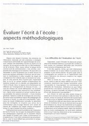 Le problème de l'évaluation de l'écrit à l'école. La contribution des dispositifs d'évaluation pédagogique organisés par le ministère depuis une dizaine d'années. Les difficultés de l'évaluation de l'écrit. Analyse des données recueillies par les opérations nationales d'évaluation.