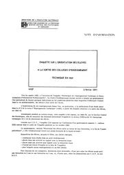 Enquête sur l'orientation des élèves à la sortie des collèges d'enseignement technique en 1969 / Ministère de l'éducation nationale. Service central des statistiques et sondages