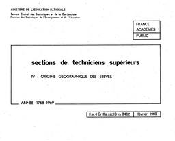Sections de techniciens supérieurs. Origine géographique des élèves. Public, 1968-69.