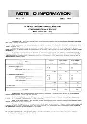 Bilan de la prolongation scolaire dans l'enseignement public et privé. Année scolaire 1971-1972