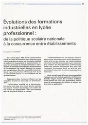 Education & Formations : n° 21 - octobre - décembre 1989. article 03, Evolutions des formations industrielles en lycée professionnel : de la politique scolaire nationale à la concurrence entre établissements. / Catherine Agulhon