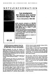 Les enseignants des classes sous contrat du second degré ; privé, France métropolitaine, 1989-1990