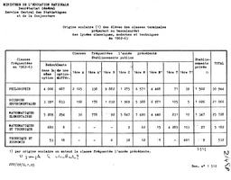 Origine scolaire des classes terminales préparant au baccalauréat des lycées classiques, modernes et techniques, 1962-63.