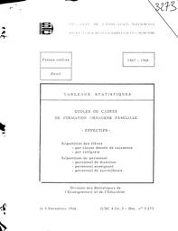 Effectifs des écoles de cadres de formation ménagère familiale, 1967-68.