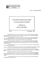 Statistique des examens du baccalauréat et du baccalauréat de technicien, session de 1970 : résultats provisoires / Ministère de l'éducation nationale. Direction chargée de la prévision