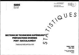 Sections de techniciens supérieurs, préparations diverses post-baccalauréat. Tableaux récapitulatifs. Année scolaire 2002-2003. Public, privé.