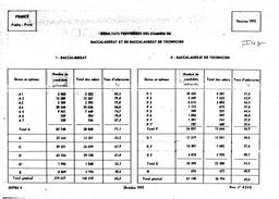 Résultats provisoires des examens du baccalauréat et du baccalauréat de technicien. Public, privé, 1972.
