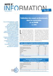 Validation des acquis professionnels dans les universités et au CNAM en 1999.