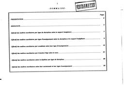 Maîtres auxiliaires selon le support budgétaire par type d'enseignement ; par discipline selon le support budgétaire ; par tranche d'âges et sexe ; selon le diplôme possédé et le type d'enseignement ; selon leur ancienneté et le type d'enseignement. Récapitulation académique des maîtres auxiliaires : par type d'enseignement ; par discipline selon le support budgétaire.
