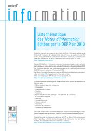 Liste thématique des Notes d’Information éditées par la DEPP en 2010 / Ministère de l'Education nationale, de la jeunesse et de la vie associative. Direction de l'évaluation, de la prospective et de la performance