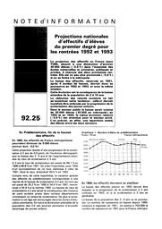 Projections nationales d'effectifs d'élèves du premier degré pour les rentrées 1992 et 1993.