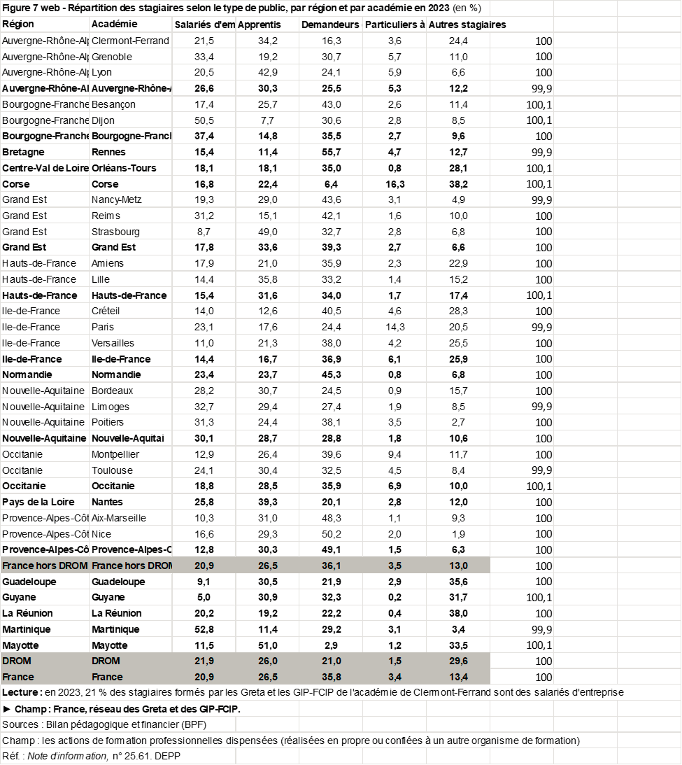 (Abriac, D. (2025). La formation professionnelle dans le réseau des Greta et des GIP FCIP en 2023. Note d’Information (25.61, page 2.- MEN)