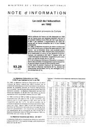 Le coût de l'éducation en 1992 ; évaluation provisoire du Compte