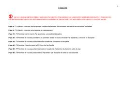 Effectifs d'inscrits par disciplines - nombre de femmes, de nouveaux entrants et de nouveaux bacheliers ; inscrits par académie et établissement ; nombre total d inscrits par académie, université et discipline ; nombre de nouveaux entrants en première année de cursus licence par académie, université et discipline ; nombre de nouveaux bacheliers par académie, université et discipline ; nombre d'inscrits selon la PCS du chef de famille ; nombre de nouveaux bacheliers selon l'académie d'obtention du bac et la série du bac ; nouveaux bacheliers par discipline et série du bac.