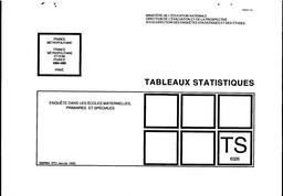 France métro, France sans TOM, France et par zone géographique : répartition par niveau des élèves et des classes à plusieurs cours ; classes à effectif variable ; écoles à classe unique selon le nbre de cours enseignés dans la classe ; élèves et classes par niveau ; classes par ordre d'importance ; âge et sexe des élèves de préélémentaire. France métro, France sans TOM, France : élèves selon leur niveau et leur cycle ; élèves et classes des écoles d'enseignement spécial ; écoles selon leur nbre de classes et le nbre d'élèves par classe ou d'élèves de leur école ; CLIS ; âge et niveau des élèves de l'élémentaire.