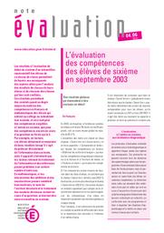 L'évaluation des compétences des élèves de sixième en septembre 2003 / Laurence Dauphin, Brigitte Rebmeister et Christine Zelty
