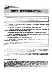 Dépenses et ressources des établissements d'apprentissage. France sans TOM. Exercice 1984.