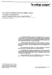 Classe (une) indifférenciée du collège unique : la classe de quatrième. Quels enseignements pour quels élèves ?