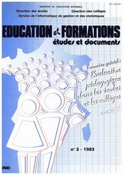 Education & Formations : études et documents .- numéro spécial : Evaluation pédagogique dans les écoles et les collèges, CM2/6ème.- n° 3, 1983 / Ministère de l'éducation nationale. Service de l'informatique de gestion et des statistiques
