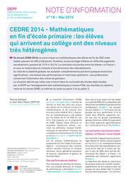 CEDRE 2014 - Mathématiques en fin d'école primaire : les élèves qui arrivent au collège ont des niveaux très hétérogènes / Étienne Dalibard et Jean-Marc Pastor