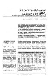 Coût (le) de l'éducation supérieure en 1994.