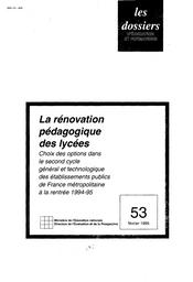 Rénovation (la) pédagogique des lycées. Choix des options dans le second cycle général et technologique des établissements publics de France métropolitaine à la rentrée 1994-95.