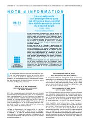 Enseignants (les) et l'enseignement dans les divisions sous contrat des établissements privés du second degré ; 1992-1993 ; France métropolitaine.