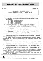 L'enseignement du premier degré public : situation des effectifs d'élèves à la rentrée 1980-1981 : statistiques provisoires / Ministère de l'éducation. Service des études informatiques et statistiques