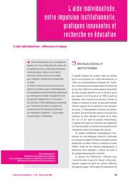 Éducation & formations : Le thème : L'aide individualisée réflexions et enjeux : n° 65 - janvier-juin 2003. Chap. 16, L'aide individualisée, entre impulsión institutionnelle, pratiques innovantes et recherche en éducation / Nicole Braxmeyer