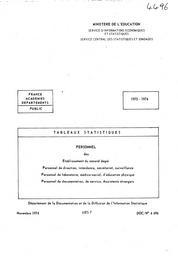 Personnel non-enseignant en fonction dans les établissements du second degré, 1973-74.