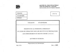 Enquête sur le personnel enseignant en cours de formation dans les Instituts de préparation aux enseignements du second degré, lettres et sciences, en 1973-74.