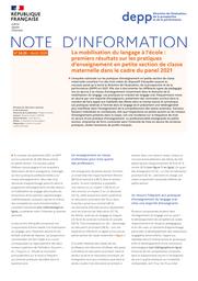 La mobilisation du langage à l’école : premiers résultats sur les pratiques d’enseignement en petite section de classe maternelle dans le cadre du panel 2021 / Roseline Verdon