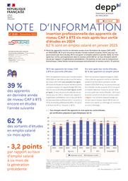 Insertion professionnelle des apprentis de niveau CAP à BTS six mois après leur sortie d’études en 2024 : 62 % sont en emploi salarié en janvier 2025 / Chloé Loiseau, DEPP-A1, Emeline Jounin, Dares
