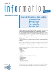 Liste thématique des notes : Information, Evaluation, Recherche. Année 2003 / Ministère de la jeunesse, de l'éducation et de la recherche. Direction de l'évaluation et de la prospective