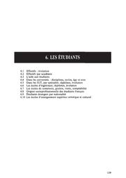 Les effectifs du supérieur : évolution de 1980-81 à 1991-92. Effectifs par académie en 1991-92. L'aide aux étudiants ; évolution depuis 1970-71. Les universités : disciplines, cycles, âge et sexe. Les IUT par spécialité : diplômes, évolution depuis 1975-76. Les écoles d'ingénieurs : diplômes, évolution depuis 1985. Les écoles de commerce, gestion, vente et comptabilité, évolution depuis 1980. L'origine socioprofessionnelle des étudiants français. Les étudiants étrangers par nationalité. Evolution du total des étrangers depuis 1982. Les écoles d'enseignement supérieur artistique et culturel.